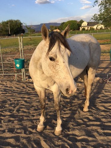 Angel is my 21-year-old mare. She is honest in her assessment and to the point. She is kind, gentle, and an incredible caretaker. I have many stores of this wonderful spirit and love her like family. She carries lots of wisdom and intelligence.